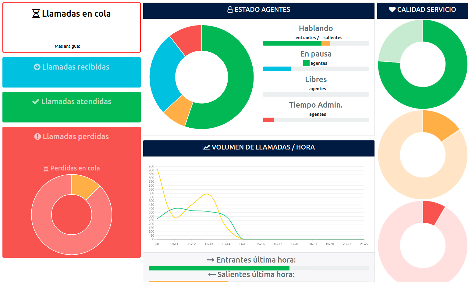 De esta manera, ICP ha podido desarrollar sus propios paneles o dashboards de supervisión del flujo de llamadas de una forma muy ágil y sencilla, utilizando directamente ANGULAR JS. Estas estadísticas pretenden reflejar, de una forma visual, las llamadas en cola, las pérdidas, el estado de los agentes, el volumen de llamadas por hora o la calidad del servicio entre otros aspectos de interés para ICP y sus clientes.